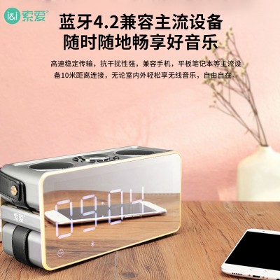 索爱(soaiy)S18 蓝牙音箱电脑音响 智能闹钟户外低音炮收音机插卡收款 广场舞扩音器创意 睿智黑