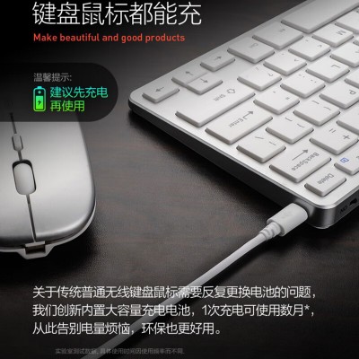九千谷 无线蓝牙键盘鼠标套装可充电办公娱乐键鼠套装笔记本电脑手机IPAD通用2.4G+蓝牙5.0+3.0 银色