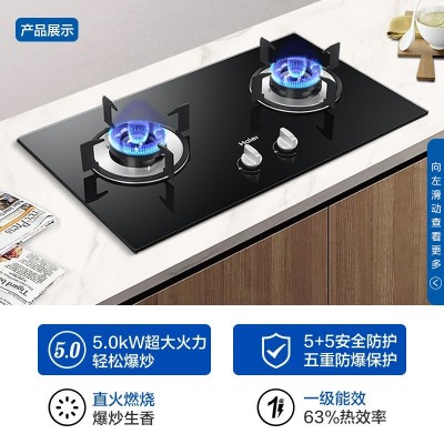 海尔(Haier)燃气灶天然气 家用嵌入式5.0kW大火力 钢化玻璃 瞬燃点火 煤气灶双灶 Q2BE2(天然气)