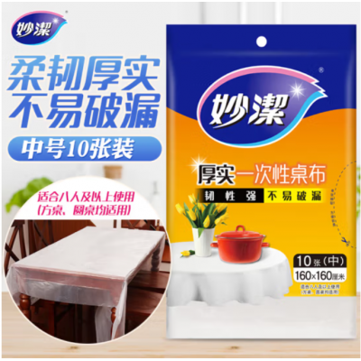 首页 > 用具 > 其他厨房用具 > 妙洁 一次性塑料桌布台布 160cm*160cm 10张/袋
