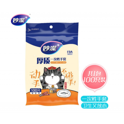 首页 > 装具 > 盥洗、厨房用织物制品 > 妙洁 一次性手套100只 抽取式厚实塑料手套餐桌野餐适用