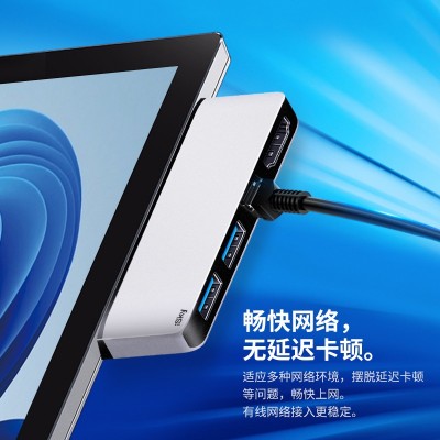 iSky 微软Surface Pro8扩展坞转网口RJ45转换器USB3.0高速传输转接头HDMI 4K高清视频连接器五合二 is-2UHR