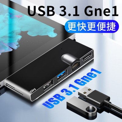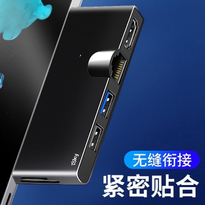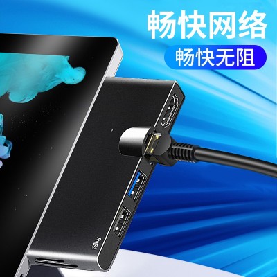 iSky 微软Surface Pro5/6扩展坞 转换器投影同屏RJ45网口HDMI转换口视频USB转换头HUB微软平板电脑4K六合二