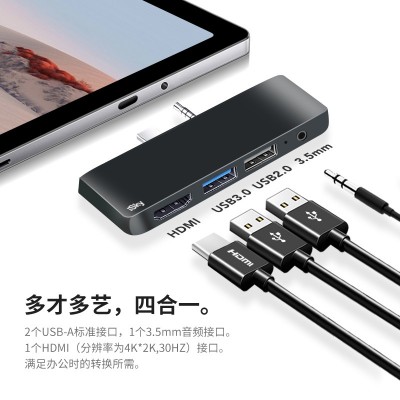 iSky 微软Surface Go/Go2/Go3扩展坞Type-C拓展USB-C转HDMI4K高清HUB分线器3.5mm音频电脑转换器拓展坞四合二