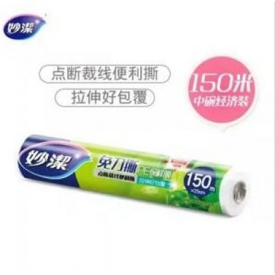 首页 > 用具 > 其他厨房用具 > 妙洁 保鲜膜断点免刀撕 25CM*150米中碗经济装大卷