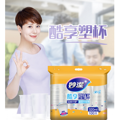 妙洁 MDPB100-B 塑杯 320ML 100只装 新老包装更替