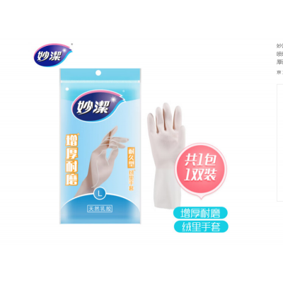 首页 > 装具 > 盥洗、厨房用织物制品 > 妙洁清洁家务橡胶手套 内里喷绒大号厨房洗碗皮 三重加厚耐用型