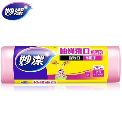 首页 > 装具 > 盥洗、厨房用织物制品 > 妙洁抽绳点断式垃圾袋大中号1卷 45cm*50cm*25只抽绳收口不脏手加厚厨房办公家用垃圾袋 中号粉色 2卷装