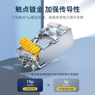 山泽(SAMZHE)?六类屏蔽工程水晶头 6类千兆网络连接器 Cat6带屏蔽电脑网线RJ45接头镀金 100个/盒 PW6100 - 天津市裕智文化用品销售有限公司