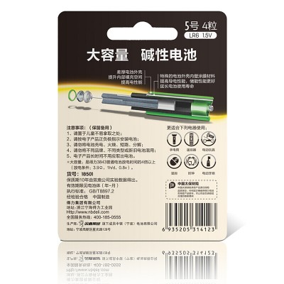 得力(deli) 20卡/盒 碱性电池适用于儿童玩具/电子门锁/鼠标/遥控器等5号4粒装18501