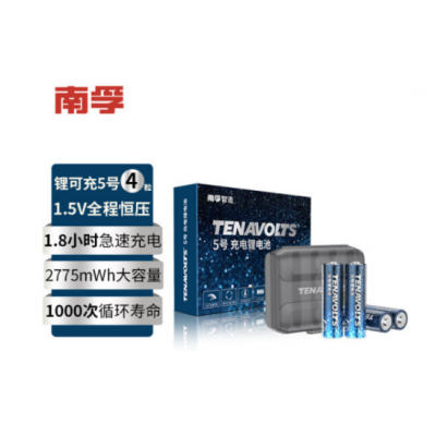 首页 > 电气设备 > 原电池和原电池组 > 南孚5号充电锂电池4粒 1.5V恒压快充 AA五号(不含充电器)