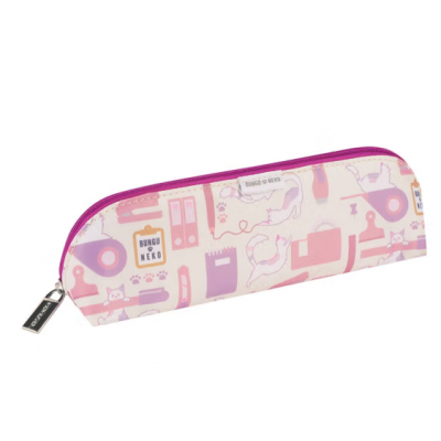 国誉kokuyo文具猫ASSORT涤纶笔袋学生用文具袋卡通动漫可爱文具盒便携大容量笔盒文具收 WSG-PC2M102VP 紫粉色