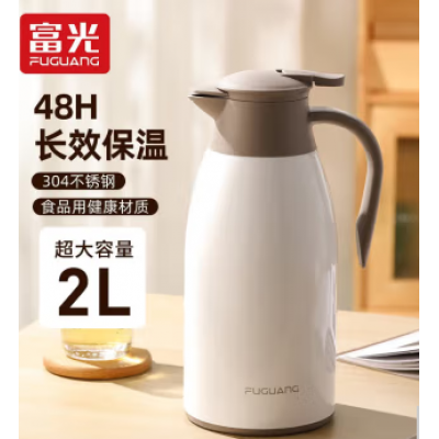 富光 保温壶大容量2L白色 可选金色黑色 内外304不锈钢保温壶 易清洗 热水壶开水瓶