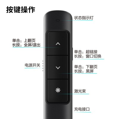 首页 > 仪器仪表 > 激光仪器 > 得力(DELI)2808PL 360度控制教师专用PPT超链接功能教鞭/无线演示器 红光充电款激光翻页笔 黑色 2808PL