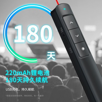 得力(DELI)2808PL 360度控制教师专用PPT超链接功能教鞭/无线演示器 红光充电款激光翻页笔 黑色 2808PL
