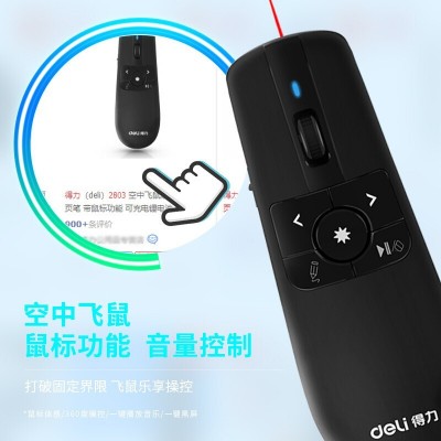 得力(deli) 空中飞鼠激光笔/PPT翻页笔 带鼠标功能 可充电锂电池 红光 黑色 2803