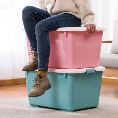 茶花(CHAHUA)茶花收纳箱大号80L 塑料加厚储物箱塑料储藏有滑轮整理箱 2839 颜色随机1个