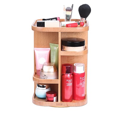 信发(TRNFA)TN-M660 木制旋转化妆品收纳盒桌面收纳架护肤品箱收纳柜整理盒 实木多层 梳妆盒展示置物架