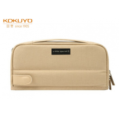 国誉(KOKUYO)一米新纯文具笔袋盒多功能手提收纳帆布包 分区收纳 浅棕色 中号WSG-PCS133LS