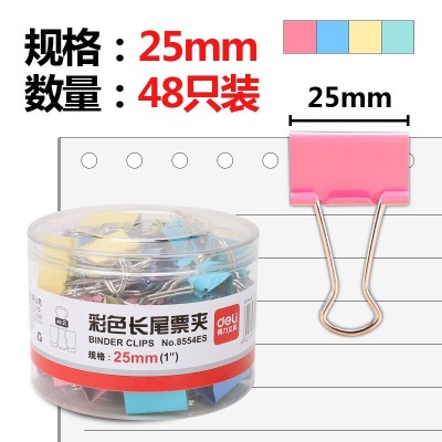 得力(deli)长尾夹凤尾夹(25mm/48只/筒)文具办公资料铁夹黑色金属燕尾夹彩色大号文件夹小号票据试卷夹鱼尾夹不锈钢 8554ES彩色中号