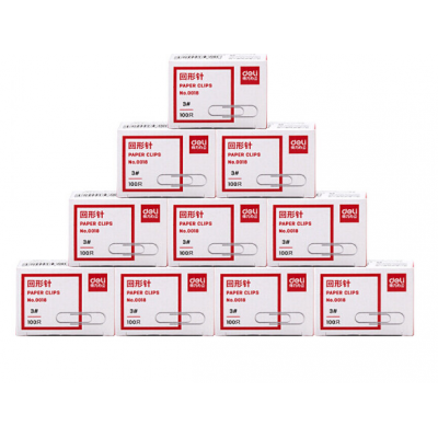 得力(deli)3#金属回形针 镀镍防锈曲别针 100枚/盒 10盒装 办公用品 0018