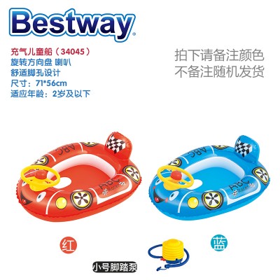 Bestway百适乐 充气儿童船宝宝充气船婴儿游泳圈儿童座圈幼儿玩具船小孩水上充气玩具 2岁及以下 儿童船34045(有脚洞)+大号脚泵