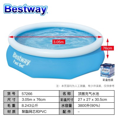 首页 > 装具 > 船帆、风帆和野营用等物品 > Bestway百适乐 儿童充气游泳池 大型家用戏水池别墅庭院户外游泳池直径3.05m高0.76m 57266