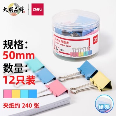 得力 彩色长尾夹 燕尾夹 8551