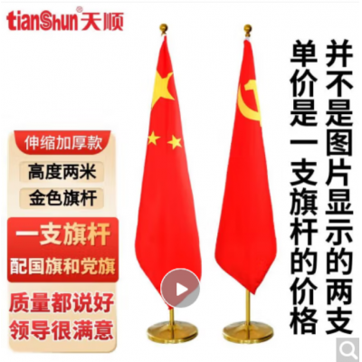 首页 > 办公用品 > 教具 > 天顺 立式落地旗杆国旗党旗摆件办公室会议室党旗国旗摆件五星红旗国旗2米伸缩旗杆 2米金色伸缩加厚款(一支旗杆+国旗1面+党旗1面)