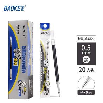 宝克(BAOKE) 按动笔芯 0.5mm按动中性笔芯 顺滑商务办公签字笔芯学生考试水笔芯学习办公文具 黑色 彩虹系列(20支/盒)PS1890