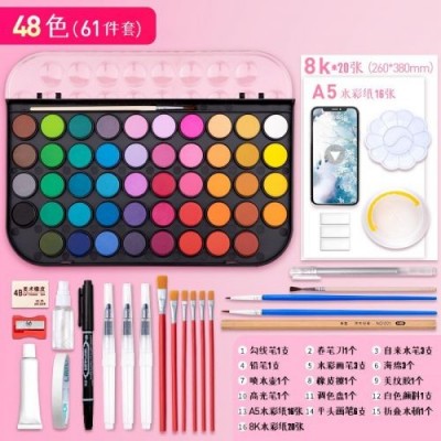 晨光(M&G) 固体颜料水彩颜料套装水彩画工具专业美术固体水粉颜料初学者学生用水彩固体颜料盒便携颜料 【店长推荐】48色-送61件套
