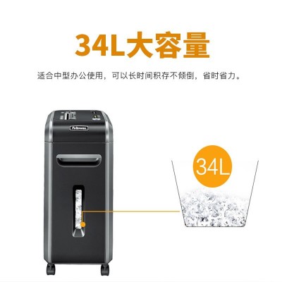 范罗士碎纸机大型商用办公持续长时间可碎光盘订书钉/安全触停/静音技术/大容量纸箱Fellowes 99Ms【单次碎纸14张,纸箱容量34L,碎切】