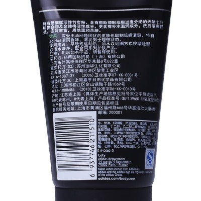首页 > 办公用品 > 肥(香)皂和合成洗涤剂 > 阿迪达斯 adidas 男士劲透控油炭爽洁面膏100g 活性洁面 吸收多余油脂