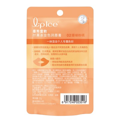 曼秀雷敦 什果冰变色润唇膏-02珊瑚粉橘2g (温感变色 妆感自然 温和滋润 )