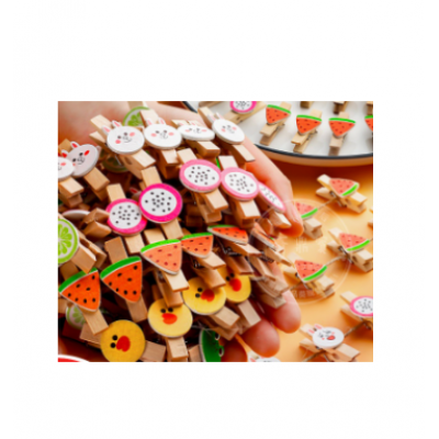 卡通相片夹子diy幼儿园手工材料彩色照片木质夹 带麻绳(10个每包)