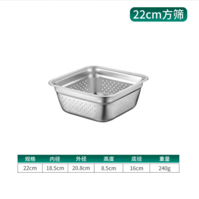 首页 > 用具 > 其他厨房用具 > 不锈钢方筛 22cm 滤水盆304漏水盆平底沥水盆洗菜筐卤菜盘漏油盆
