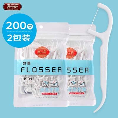 唐宗筷 经典牙线棒舒适牙签 牙签线 家用便携2袋200支
