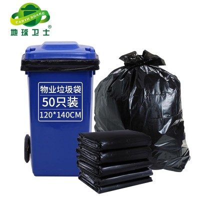 地球卫士 户外垃圾袋干湿分类大号商用物业酒店大垃圾袋加厚120*140cm平口黑色垃圾袋大容量50只装