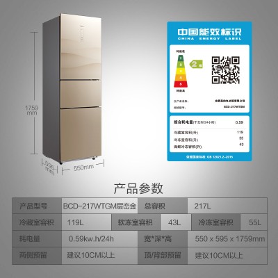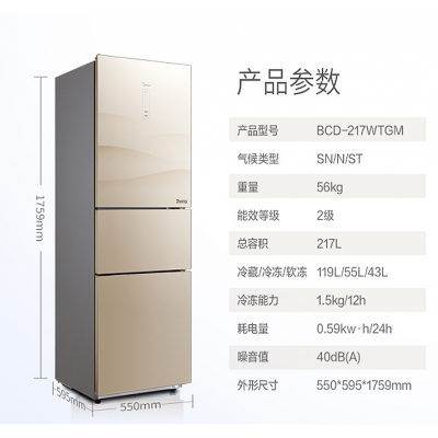 首页 > 电气设备 > 电冰箱 > Midea/美的 BCD-217WTGM/213/215/217冰箱小型三门家用三开门节能 BCD-217WTGM