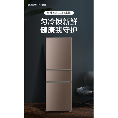 创维冰箱(SKYWORTH)BCD-233T 三门三温区 4维均冷 电脑控温 7挡温度调节 典雅棕 (233升)BCD-233T典雅棕