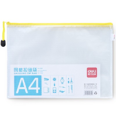 得力(deli) 5654拉链袋文件袋 网格资料袋 试卷学科拉链袋 颜色随机 办公用品 A4 网格拉链袋