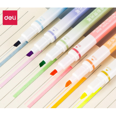 得力(deli)6色荧光笔套装 醒目标记笔 双头双色系 手帐可用水性记号笔6支/盒DL-S608