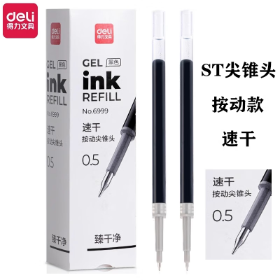 得力6999 速干按动中性笔替芯0.5mm尖锥头(黑)(20支/盒)