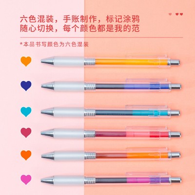 首页 > 办公用品 > > 得力(del) A123彩色中性笔0.5mm子弹头糖果6色按动笔签字笔 荧光笔水笔手账笔 6支套装