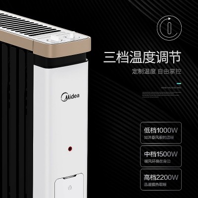 美的 Midea NY2212-18C油汀电暖取暖器加湿盒烤火炉办公室卧室加宽暖气片电暖器儿童防烫2200W