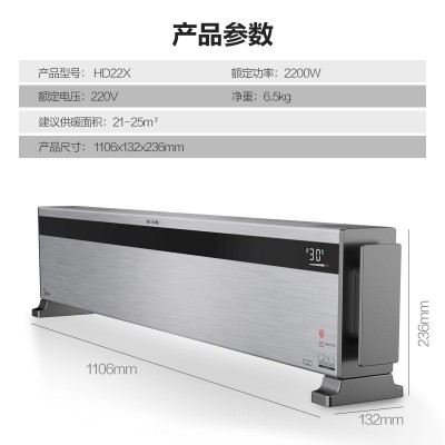 美的 Midea HD22X电暖器烤火炉踢脚线移动地暖WIFI遥控防水干衣 办公室预约定时对流