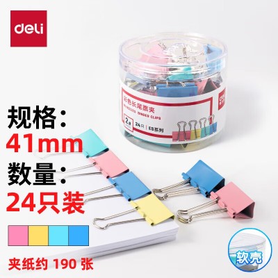 首页 > 办公用品 > 文具 > 得力(deli)长尾夹凤尾夹(41mm/24只/筒)文具办公资料铁夹黑色金属燕尾夹彩色大号文件夹小号票据试卷夹鱼尾夹不锈钢 8552ES彩色大号(41mm/24只/筒