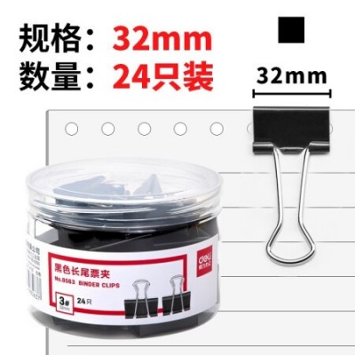 得力(deli)24只32mm黑色长尾夹票夹 中号金属燕尾夹票据夹 凤尾夹文件夹子 鱼尾夹 资料试卷夹 办公用品 8563