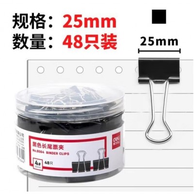 得力(deli)48只25mm黑色长尾夹票夹 中号金属燕尾夹票据夹 凤尾夹文件夹子 鱼尾夹 资料试卷夹 办公用品 8564