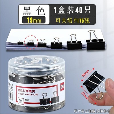 得力(deli) 长尾夹凤尾夹文具办公资料铁夹黑色金属燕尾夹大号文件夹小号票据试卷夹鱼尾夹不锈钢 8565黑色小号(19mm/40只)8565黑色小号19mm40只